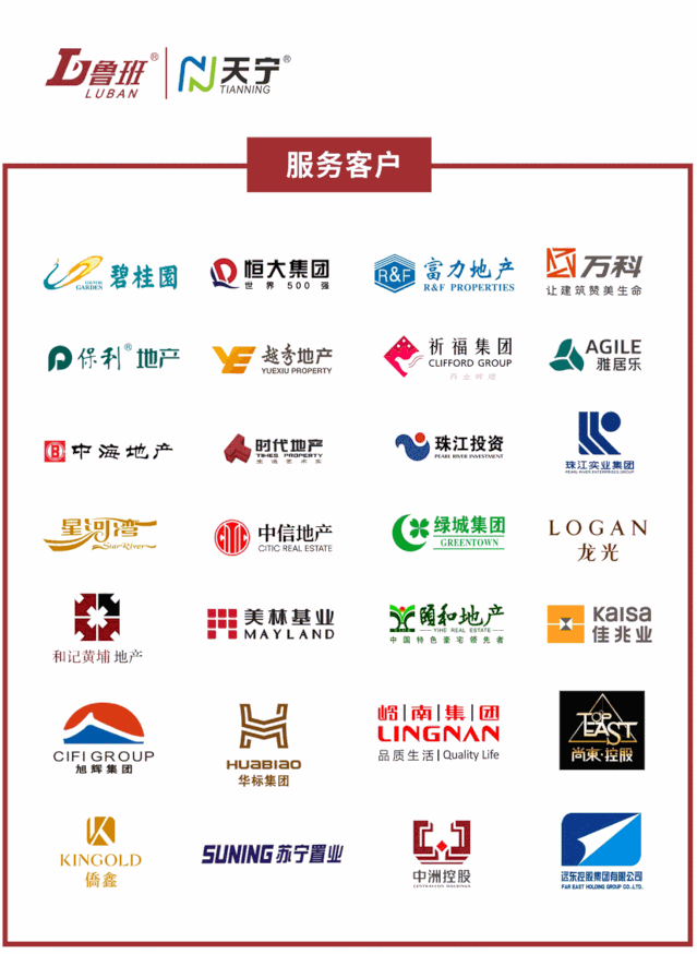 2015年,董事长邓昊先生、总经理黄汝雄先生接过鲁班大旗,扛起工匠重担,以防水补漏、特种工程为主营业务,大力拓展民用建筑领域业务。近年,鲁班公司服务的国内前50强地产品牌开发物业数不甚数。